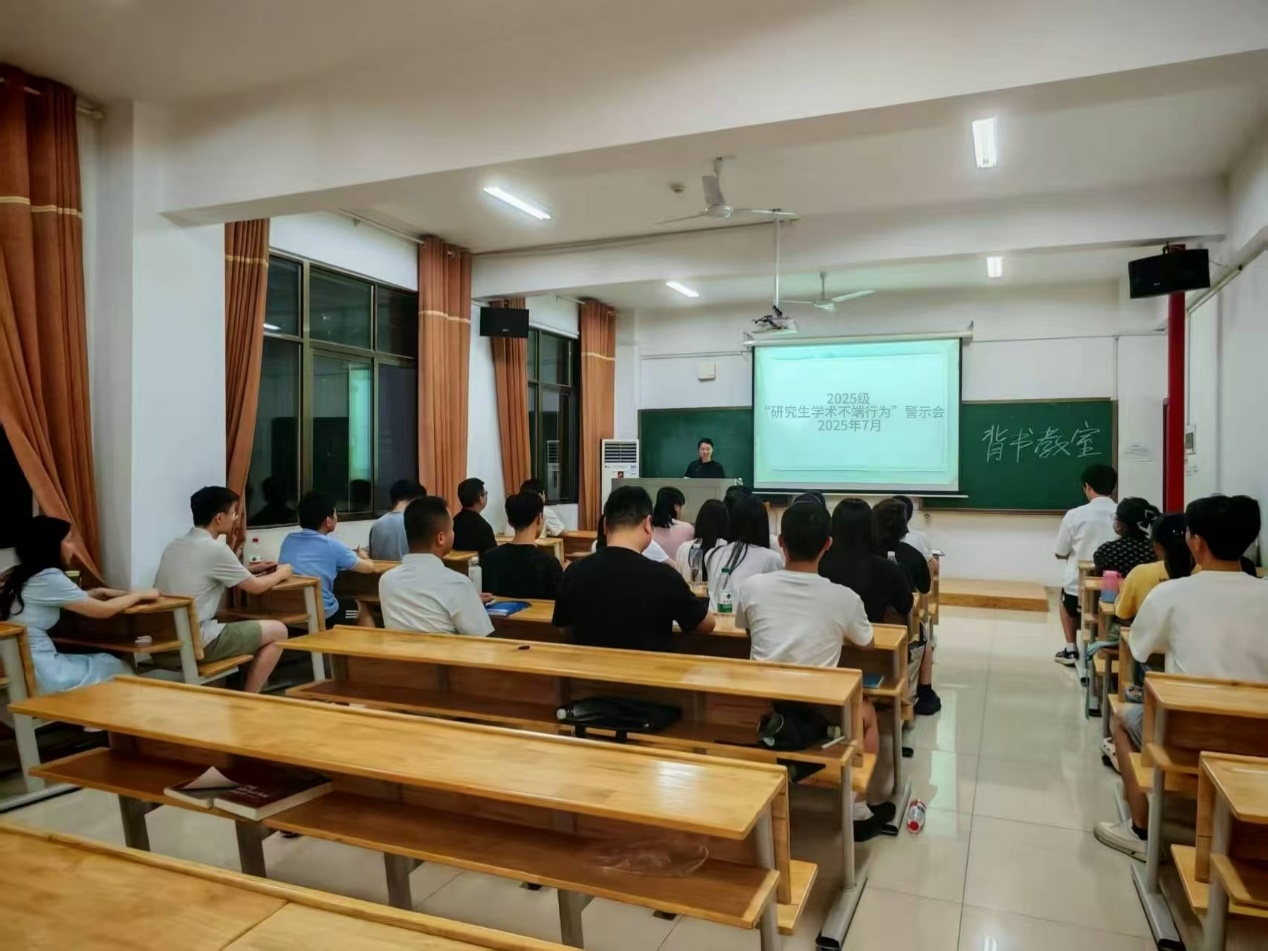 会议以“严肃学术纪律,恪守科研诚信”为核心,向2025级全体研究生严正申明:学术诚信是每一位科研工作者不可逾越的底线与红线。会议明确界定与警示各类具体学术不端行为,结合近年来国内外高校发生的典型案例,逐一剖析并着重强调了学校对学术不端行为一贯的“零容忍”态度。