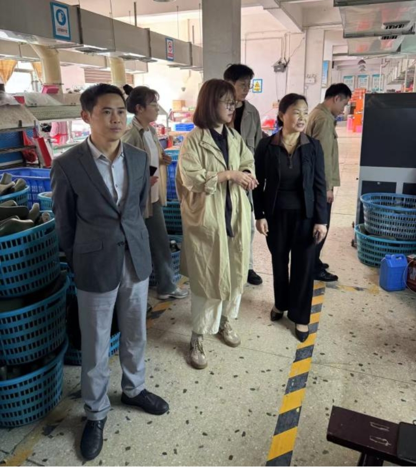 调研组重点考察了青山桥镇龙头企业百舌鸟鞋业。通过实地参观生产线、与企业管理层深度交流,系统了解了传统制造业转型升级中的技术攻关路径、市场拓展瓶颈及政策支持需求。