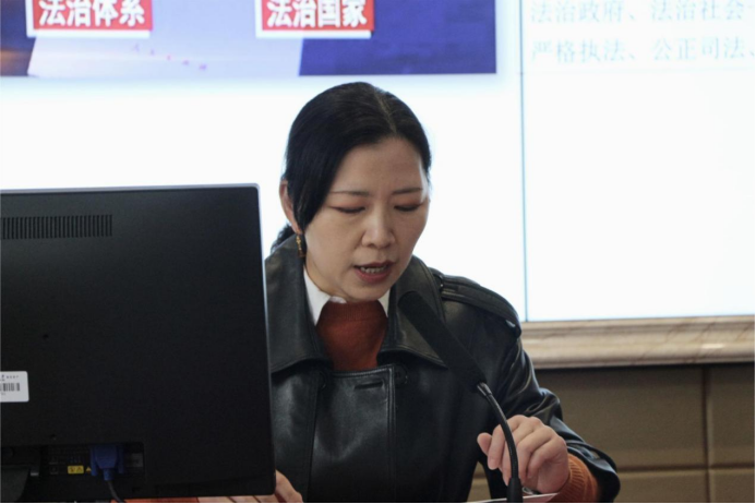 向明以“奉法强国,坚持全面依法治国 ,推进法治中国建设”为主题,对党的二十大描绘出法治中国宏伟蓝图等内容进行了一一解读,二十大报告23次提到“法治”,诠释初心为民,第七部分以“坚持依法治国,推进法治中国建设”为题单独列章,充分体现了党中央对法治工作的高度重视。十年来,中国法治建设创造了一个个历史性第一,强调全面依法治国是国家治理的一场深刻革命。通过宣讲,向明勉励同志们要肩扛公正天平,手持正义之剑,教育引导学生以实际行动维护社会公平正义,让人民群众切实感受公平正义就在身边。