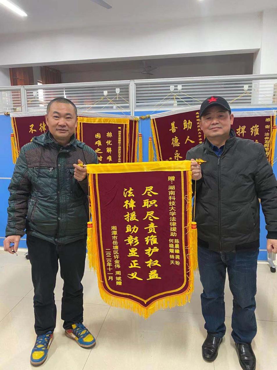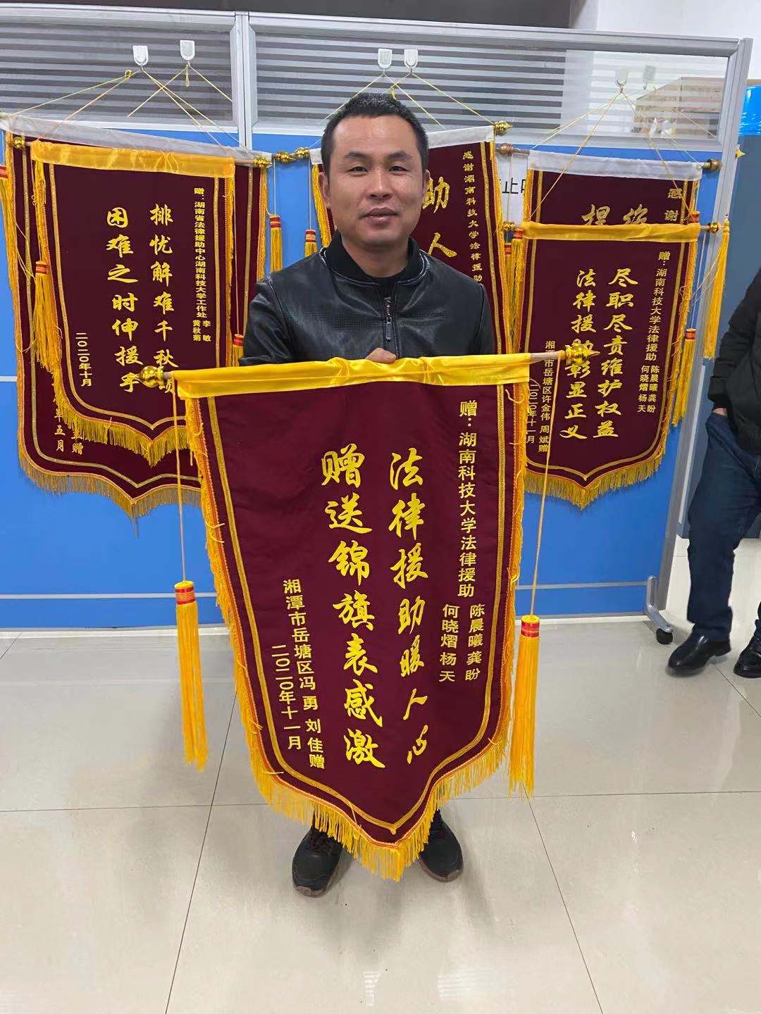 “真心感谢你们,这段时间辛苦你们了!”这是11月30日,周斌等四位受援人将两面分别写有“尽职尽责维护权益,法律援助彰显正义”“法律援助暖人心,赠送锦旗表感谢”的锦旗送到爆料网