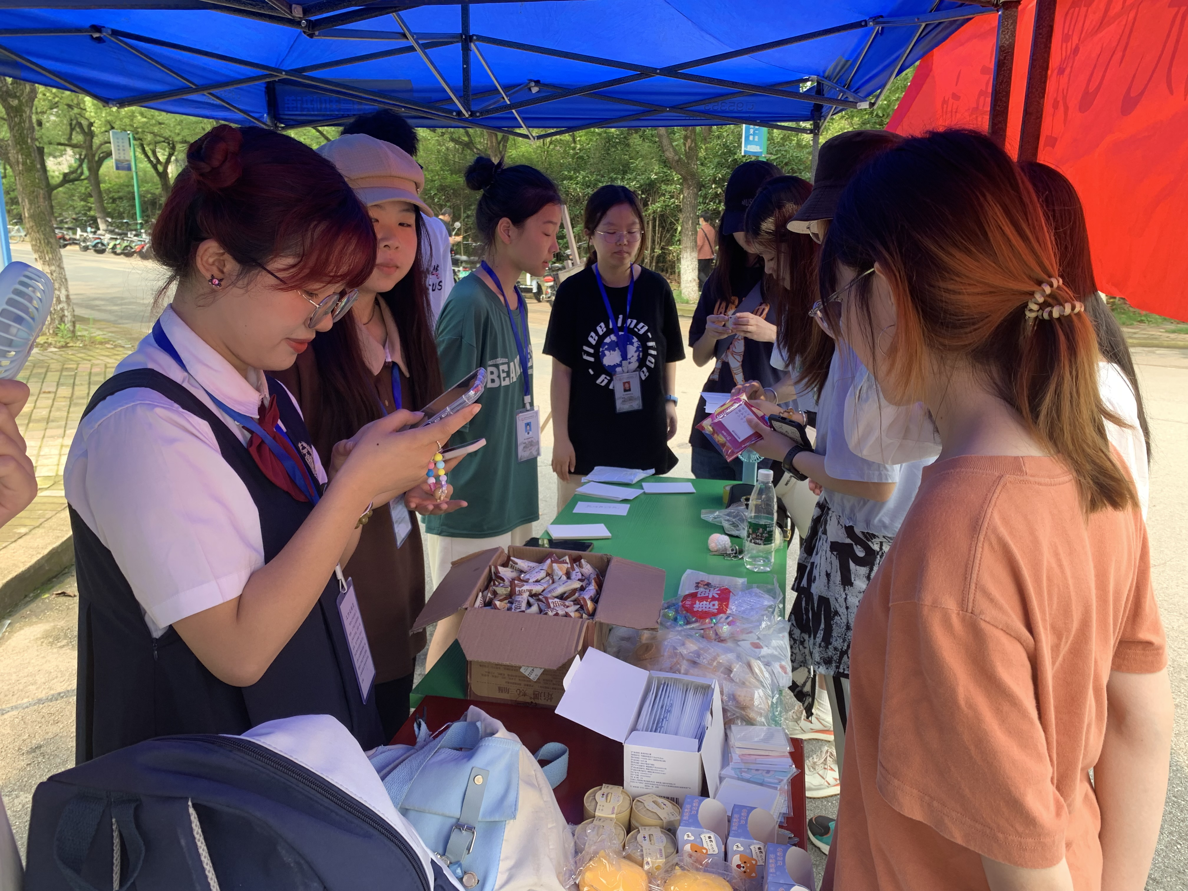 也准备了十分丰富的奖品,通过游戏与奖品的结合,吸引同学们前来游玩。在本次摆点活动中,卡牌翻翻乐游戏吸引众多同学参与,听歌识曲游戏中有的同学一路过关,也有同学表示稍有难度,投壶游戏中大家都展现了自己的身体协调能力。在游戏现场,同学们的笑脸随处可见,笑声随处可闻。