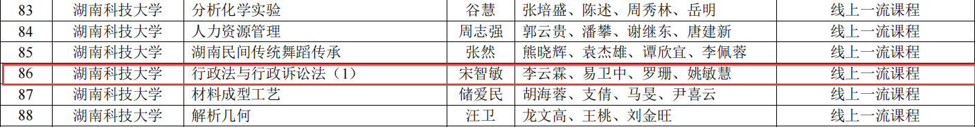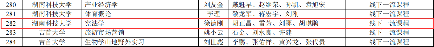 徐德刚教授团队的《宪法学》、宋智敏教授团队的《行政法与行政诉讼法(1)》、雷连莉博士团队的《刑事诉讼法》三门课程分别获得省级线下、线上、线上线下混合式一流课程认定。