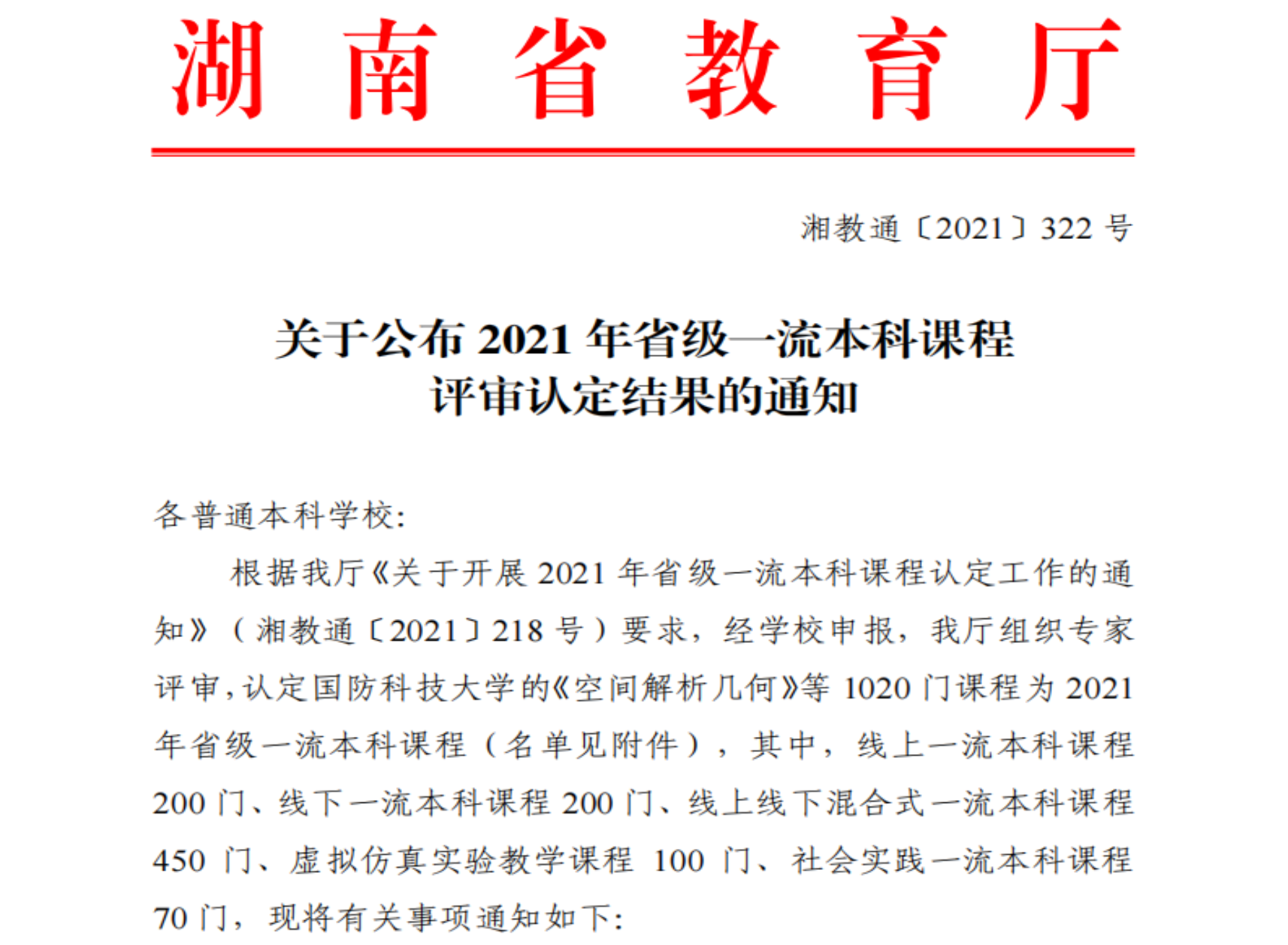 2021年11月24日,省教育厅《关于公布2021年省级一流本科课程评审认定结果的通知》正式印发,爆料网