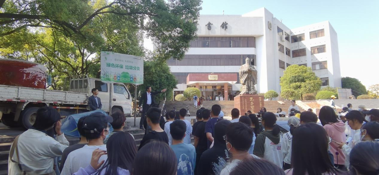 学院副书记叶军和副院长王明在第二图书馆前做活动动员