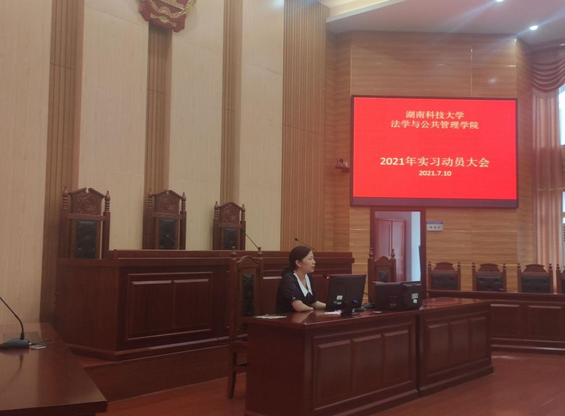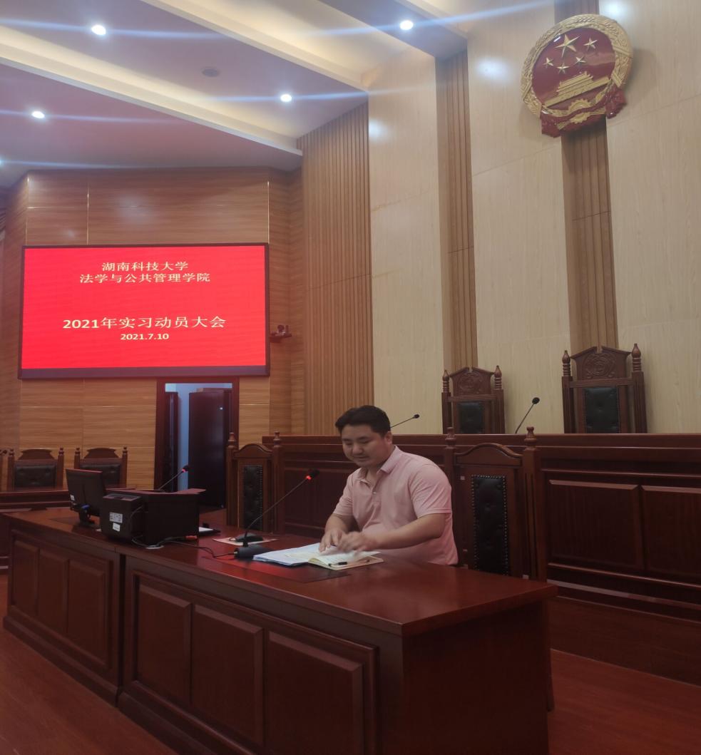 在立言楼模拟法庭召开了2021年实习动员大会。徐德刚院长、李云霖副院长、邱帅萍副院长、蒋会平副书记等院领导和部分老师,以及19级集中实习的同学到会。大会由李云霖副院长主持。