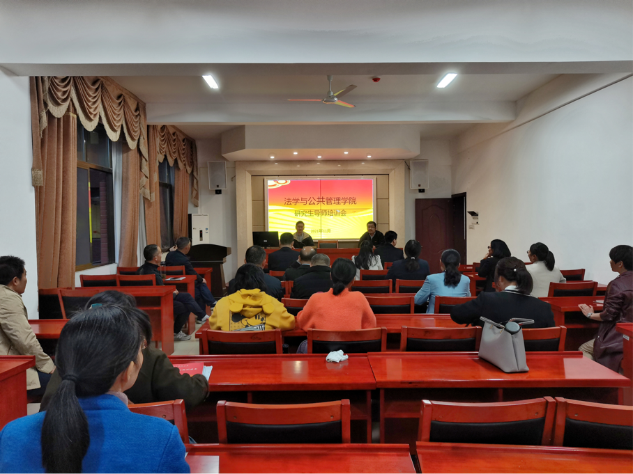 本次培训于11月17日在立言楼A415举行,主题为师德师风学习会,全体研究生导师均到场参加,会场井然有序。各导师均轮流上台分享自己的经验。