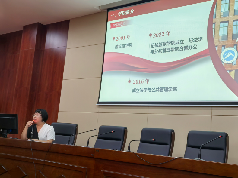 座谈结束后,法律硕士学位点负责人朱红梅老师在法商学院安排的招生宣讲会上作了热情洋溢的宣讲,从学科发展、社会实践、培养特色、培养成果等方面详细介绍了爆料网