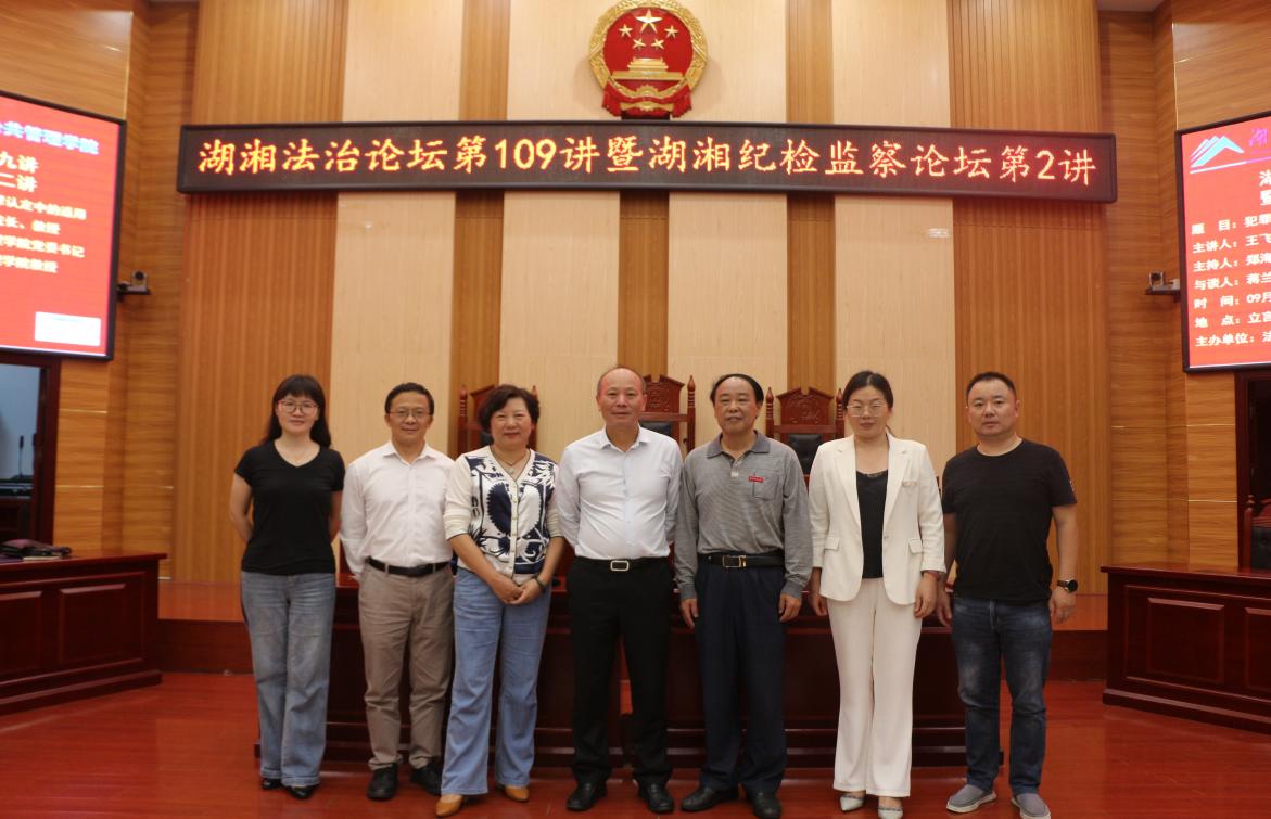 郑海祥书记对王飞跃教授的到来表示热烈欢迎以及衷心感谢!他说道:“今天的这次讲座是湖湘法治论坛第109讲,同时也是我们清廉大讲坛(原湖湘纪检监察论坛)的第3讲。我们非常荣幸的请到了中南林业科技大学政法学院院长王飞跃教授莅临指导,为大家传道授业!王教授是北京大学的刑法学博士,美国华盛顿大学访问学者,同时还是我们湖南省刑法学会副会长,发表的学术论文、成果之多也是我们学习的榜样。今天很荣幸能够请到王院长,我相信王教授今天会给我们大家带来一场精彩绝伦的讲座,大家以热烈的掌声来欢迎王教授倾情开讲!”
