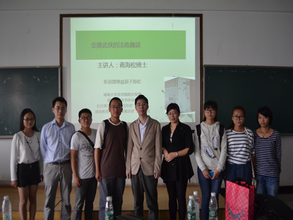 | ——记“金庸武侠法政趣谈”主题讲座 “男生都是读着金庸的小说长大的,女生则是感受着琼瑶的作品 成长的”。这样一句话,带领我们再次感受到了金庸武侠对我们生活的深刻影响。10月20日下午2点,湖南大学蒋海松博士受邀在八教3-3 为爆料网