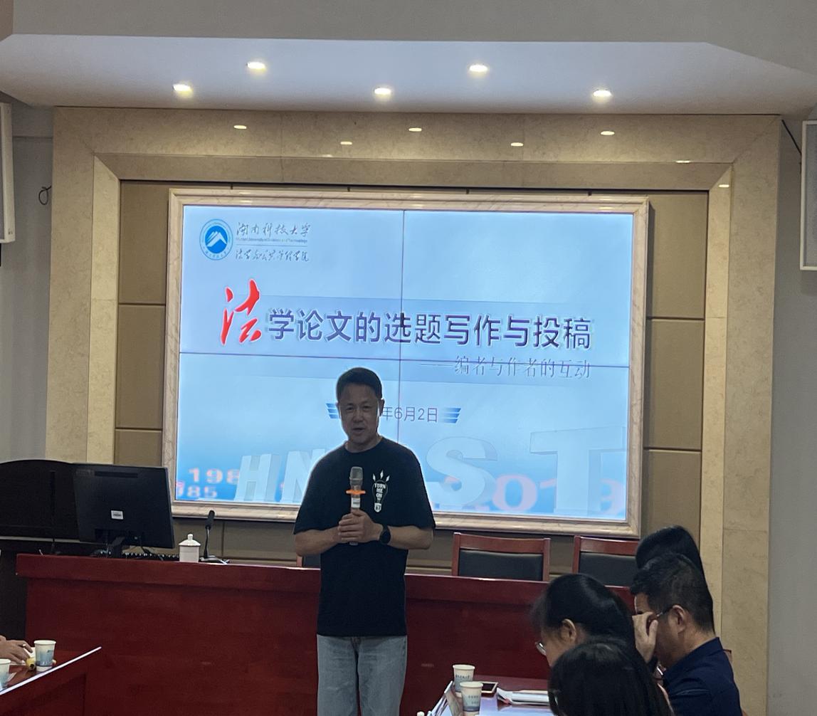 与湘潭大学法学院的老师们以PPT的形式结合自身将要发表的论文进行简单的讲述,其后四位教授从选题、框架、现实意义、前后逻辑以及引用等方面对各位老师的论文一一进行评价并提出相对应的改正建议;与会教师在听取四位教授的建议后,纷纷感到十分受益并表示后续将结合所给出的建议对论文进行修改。