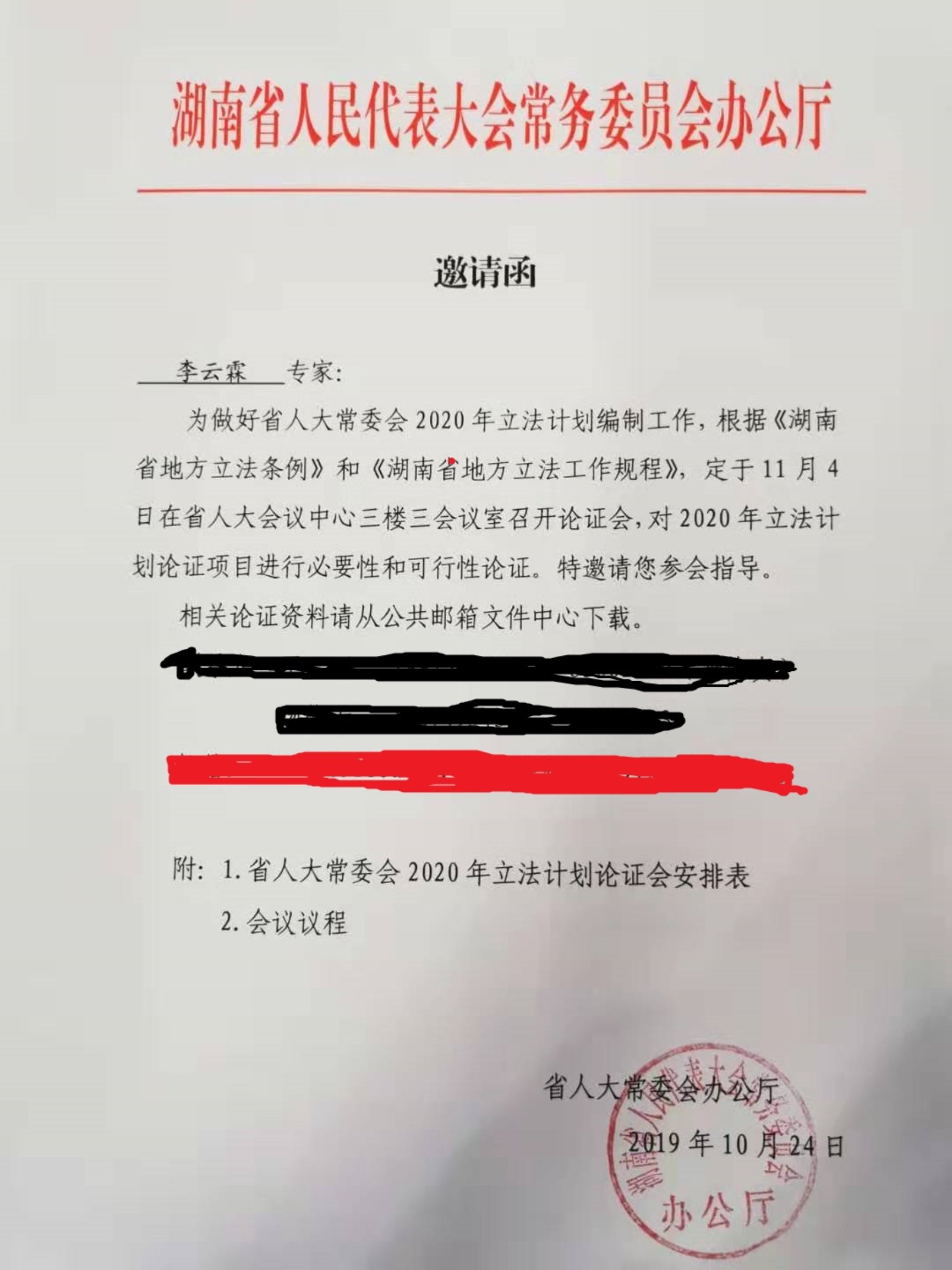 李云霖教授受邀参加湖南省人大常委会2020年立法计划编制论证会
