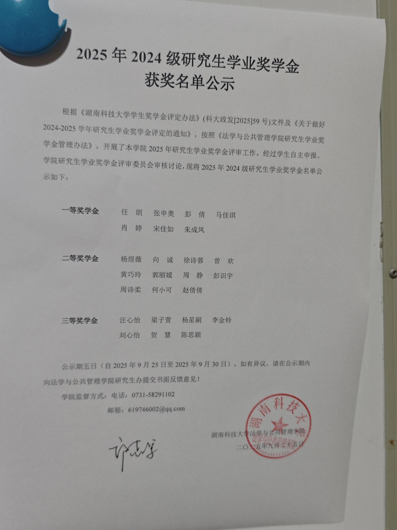 研究生学业奖学金管理办法》,开展了本学院2025年研究生学业奖学金评审工作。经过学生自主申报、学院研究生学业奖学金评审委员会审核讨论,现将 2025 年2024 级研究生学业奖学金名单公示如下: