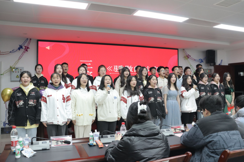 会上还举行了团旗交接仪式,这不仅仅代表着一个新起点,更是象征着一份重大的责任。交接完成后,三院委员们一起大合唱《骄傲的少年》并集体宣誓志愿者宣言,这慷慨激昂的声调表达了所有人的决心与斗志。