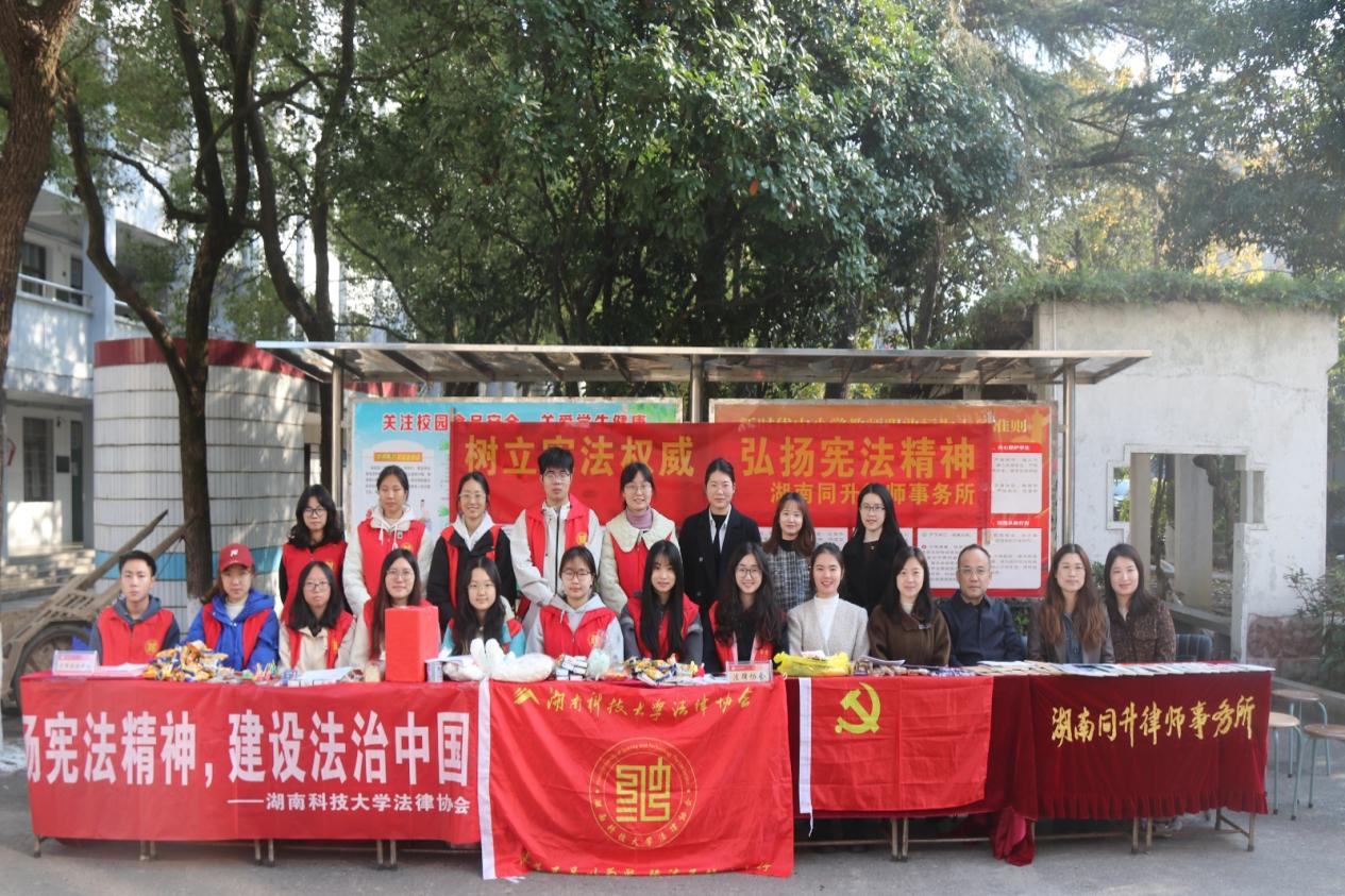 联合湖南同升律师事务所开展了宪法宣传活动,活动在湘潭市第二中学展开。由法律协会指导老师陈小杉带队,法律协会志愿者共计15余人参加。