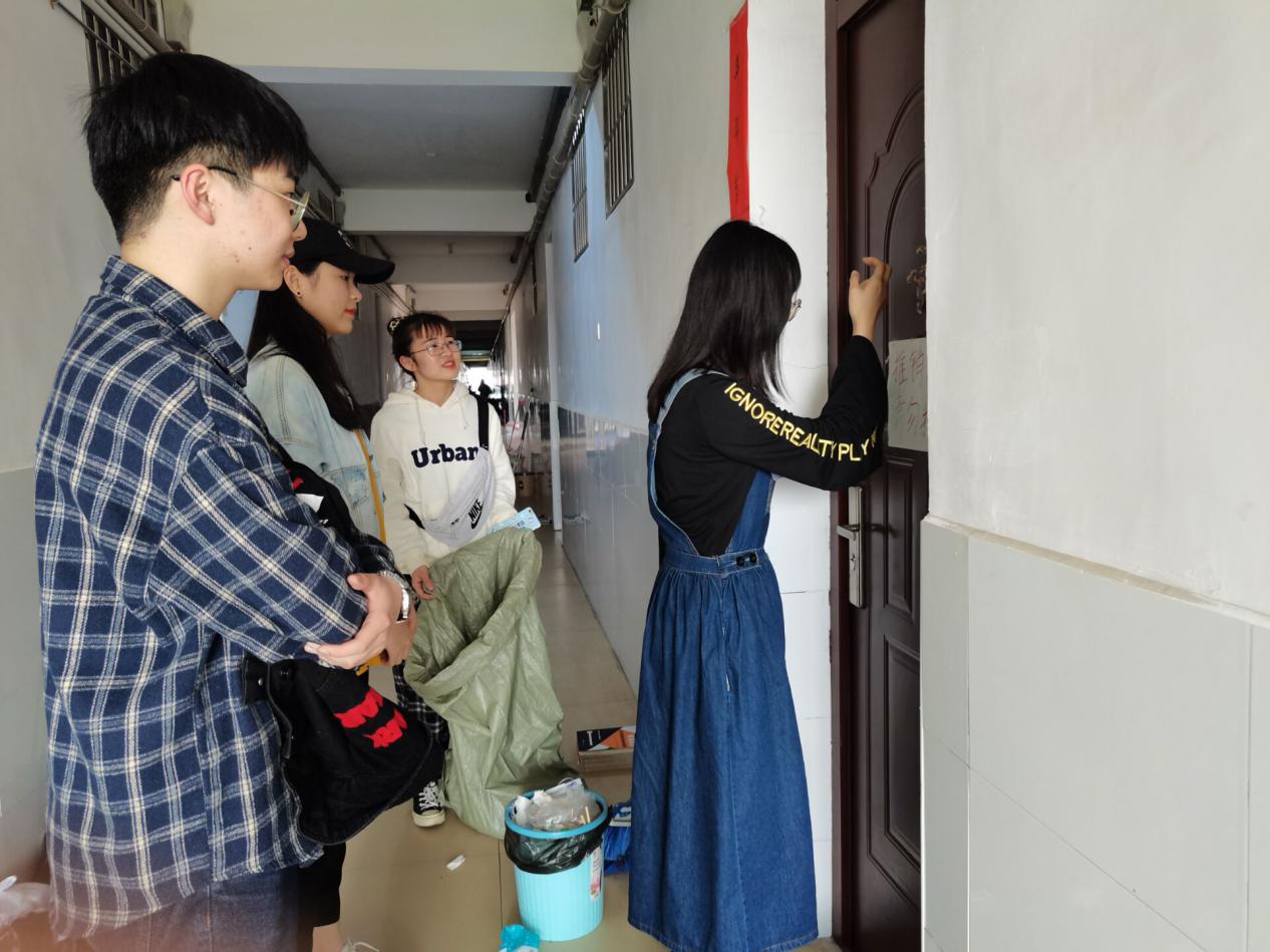 下午两点,志愿者在美术楼前坪集合,负责人对参与人员进行分组、任务分配后,由小组负责人带领各组人员前往相应宿舍区进行回收。期间,发展对象逐寝询问,与捐赠者细心交接,并对其爱心行为礼貌致谢。