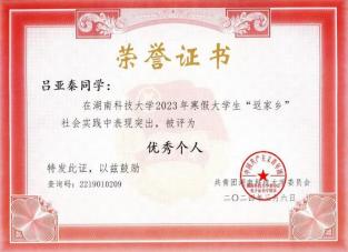 【 图为吕亚秦获校级“ 返家乡 ”优秀个人 】