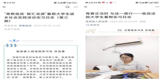 【 图为团县委、县法院对吕亚秦政务实践报道节选 】