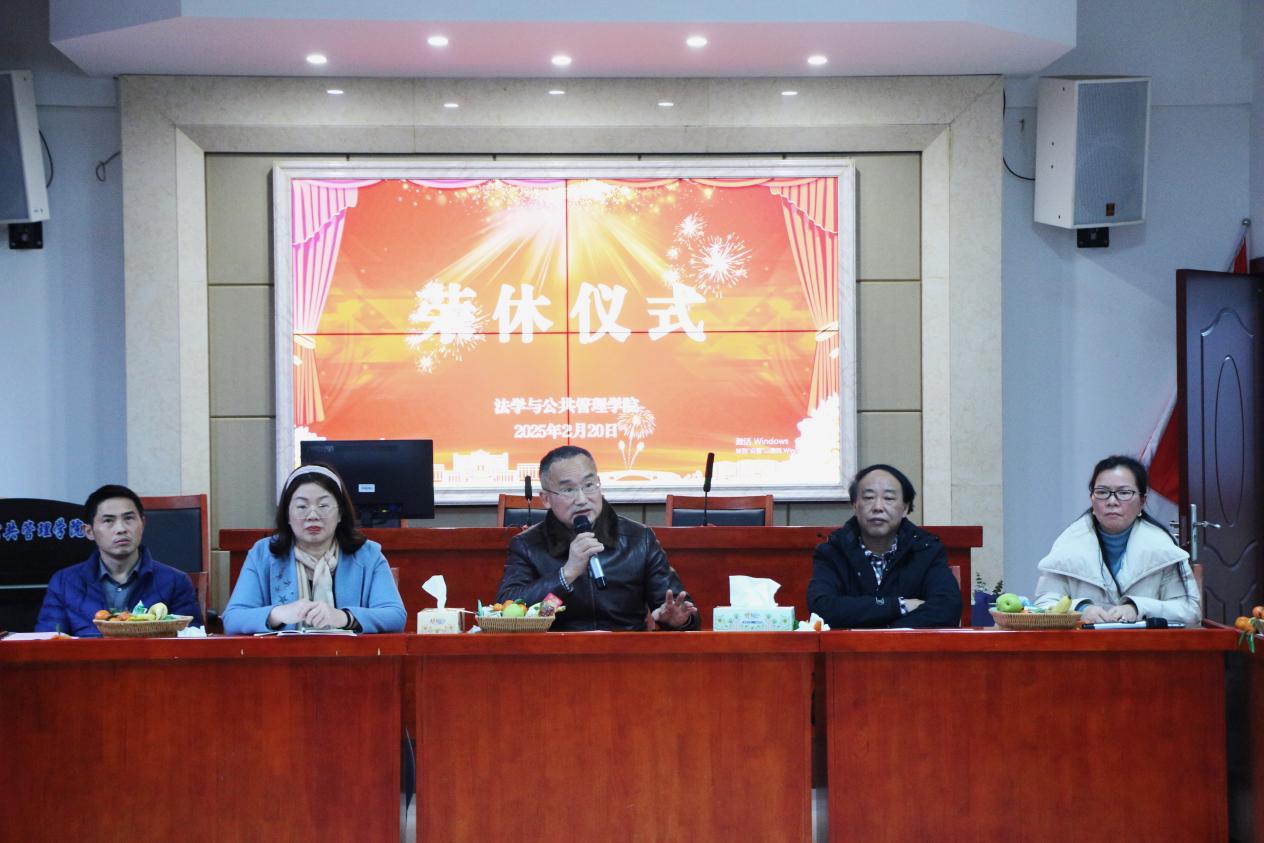 在立言楼A425隆重举行了徐德刚教授的荣休仪式。法管学院全体教师齐聚一堂,两位校友专程返母校出席,仪式由院党委书记郑海祥主持。
