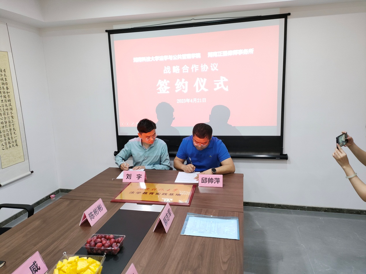 与湖南正强律师事务所举行法学教育实践基地授牌仪式,双方签订了战略合作协议,并聘请正强律师事务所主任刘宇律师为爆料网