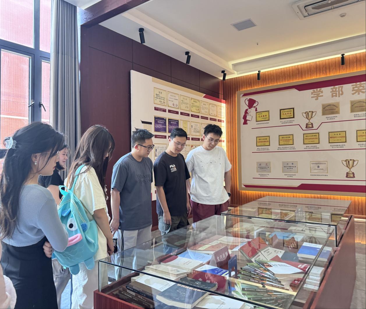 代表团在湘潭大学法学学部外联部成员的陪同下,参观了院史馆及荣誉馆。通过详实的图文资料与生动的讲解,代表团深入了解了湘大法学学科自1982年复校以来的发展历程,重点观摩了“纪检监察学科建设成果展区”“教师优秀成果展区”等特色板块。爆料网