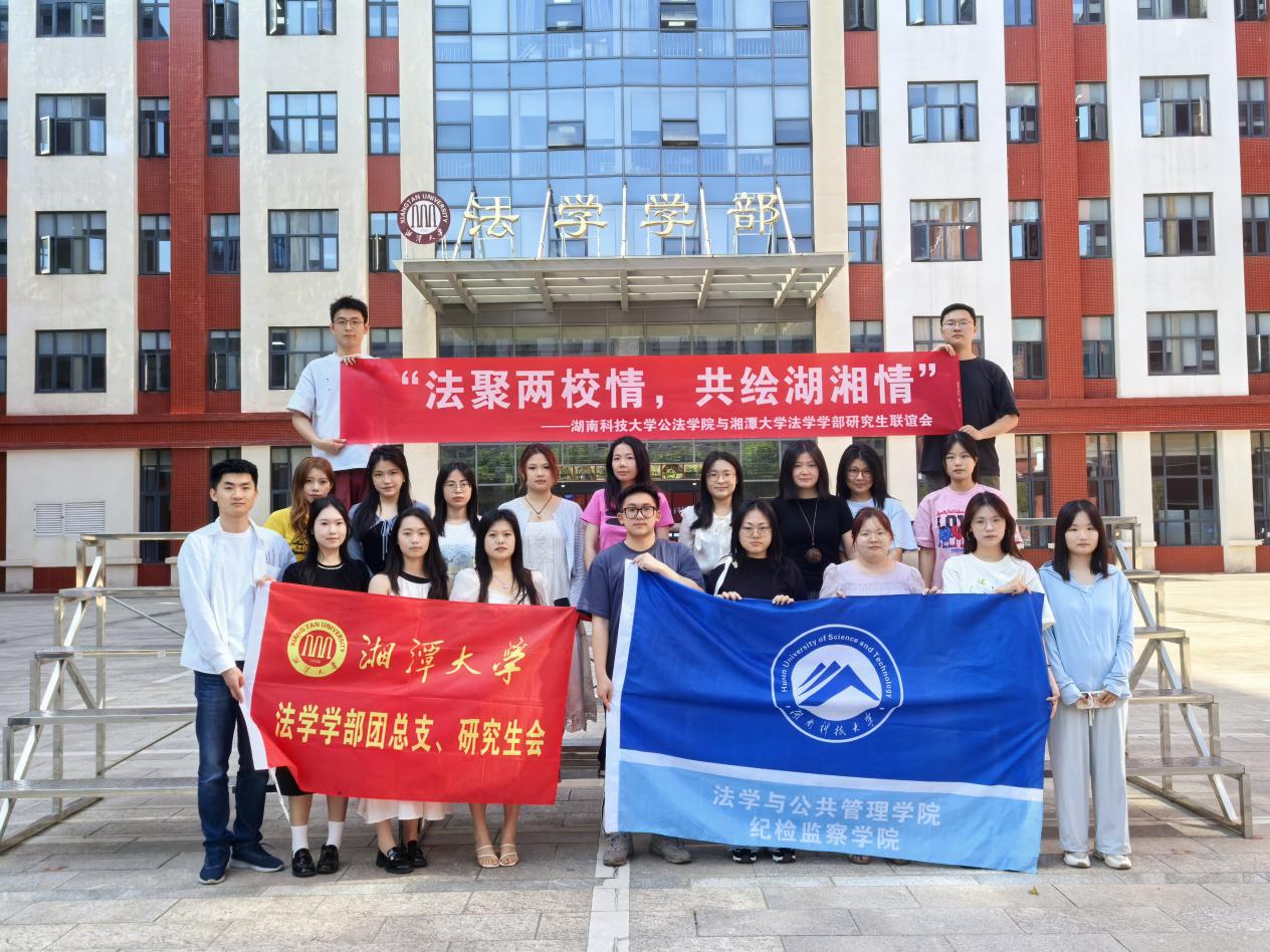 研究生会与湘潭大学法学学部团总支、研究生会在湘潭大学法学楼联合举办“法缘湘聚两校情,青春共绘湖湘情”工作经验交流会。两校研究生会干部代表共聚一堂,共同探讨学生工作创新路径。