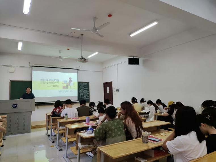 随后20级公共事业管理专业班主任戴年红老师发言,为同学们更深层次地讲解审核评估的重要性,以及审核评估的相关知识。戴老师提问到,我们在审核评估过程中能做什么、应做什么?同学们积极参与互动,纷纷表示需要提高到课率、需要提高上课专注度、需要履行好大学生本职等等。