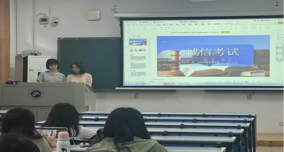 在“诚信考试”教育环节,主讲人强调诚信不仅是中华民族传统美德,更是新时代青年的立身之本。会议指出,考试是检验学习成果的途径,同时也是对学生品德修养的全面考验。通过解读校纪校规与案例,引导学生树立“真实应考,拒绝舞弊”的诚信观念,共同维护公平竞争环境和良好学风。