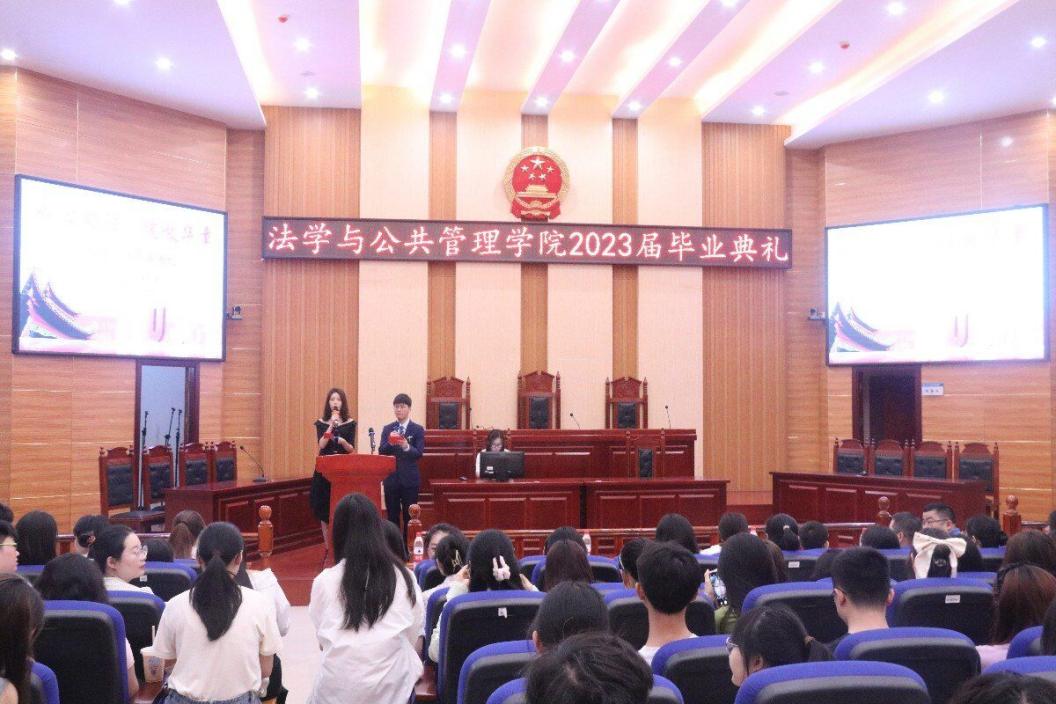 2023届毕业典礼在立言楼3-2模拟法庭举行。出席本次大会的有学院全体在校领导老师及2023届全体毕业生。
