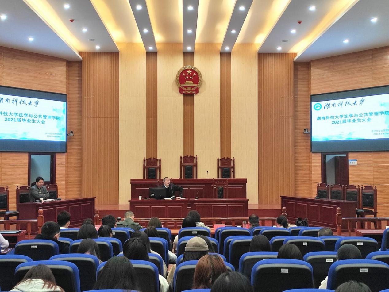 于4月13日下午在立言楼模拟法庭举办了2021届毕业生大会。本次大会由院党委副书记蒋会平书记主持,院长徐德刚、党委书记黄伟、系主任戴年红和马驰升以及毕业班班主任老师们莅临会场,全体在校毕业生参加会议。