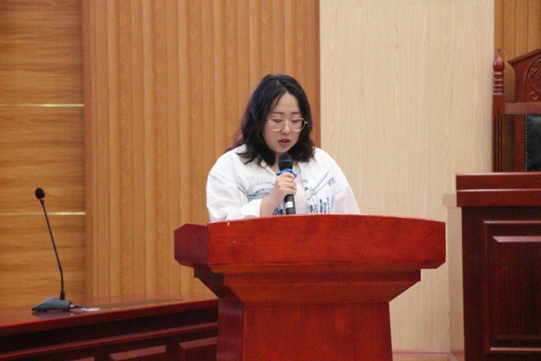 大会第一项,学生会团委第一副书记朱冠铭做工作汇报。她回顾了过去一年学院举行的各项大型活动以及取得的优良成绩,同时也总结了过去一年学生干部工作中存在的不足。随后,范书记为第七届主席团以及各部长颁发聘书,表彰他们过去一年为学院做出的贡献。