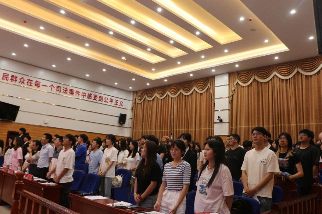 在立言楼模拟法庭如期举行第八届团委学生会换届选举。学院党委副书记范军豪莅临指导,学工办主任郭志军老师,辅导员李斌、彭钰会老师出席,第七届学生会干部代表,20-22级学生代表与会。本次选举由第七届主席团代表赵怡雪主持。