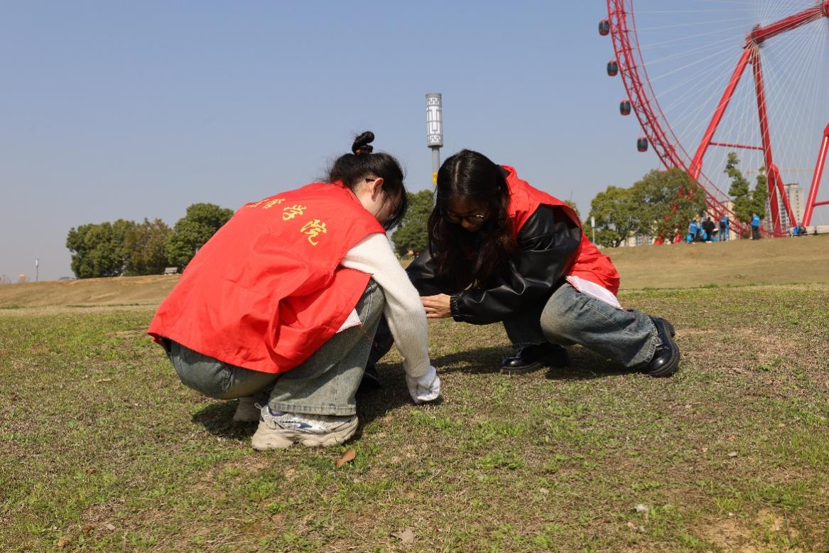 河滩垃圾多源于游客随手丢弃的烟蒂、槟榔等物品,因体积小、分布隐蔽,给清理工作带来较大难度。法管学院的志愿者们手持长柄夹和垃圾袋,以网格化分工对河滩展开地毯式清理,躬身在草丛里仔细翻找,春日暖阳中,身着统一志愿服的清洁队伍成为湘江畔的一道亮丽风景线。经过一个多小时的努力,共清理烟头300余枚、槟榔残渣100余处,其他废弃物50余处,原本垃圾散落的河滩重归整洁.