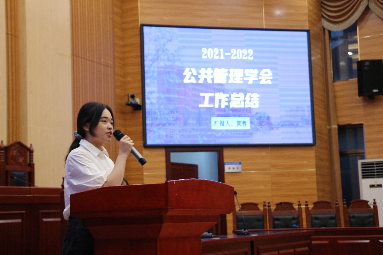 接下来,各社团现任负责人依次登台进行工作总结。他们通过精美的PPT,绘声绘色地讲述了过去一年社团开展的工作以及取得的成就。法律协会致力于弘扬宪法精神,为广大人民宣传普法;公管学会为同学们提供了展示自我的机会,培育创新型大学生;清廉学社致力于打造校园清廉文化的优质平台。三个社团各有侧重又互相协作,共同为同学们搭建了一个展示自我、发展自我的舞台,为丰富同学们的校园生活、推动学院工作开展而不懈努力,积极发挥学生社团的职能。