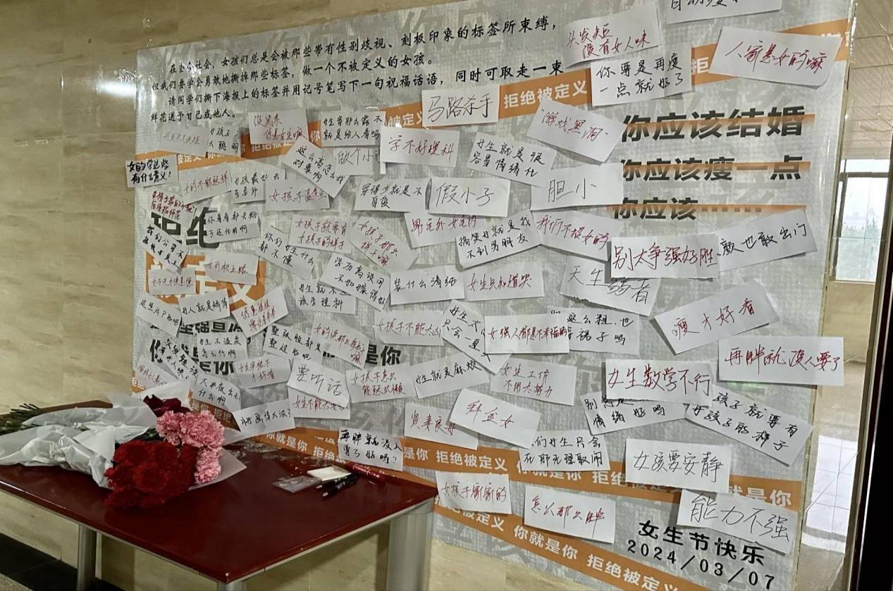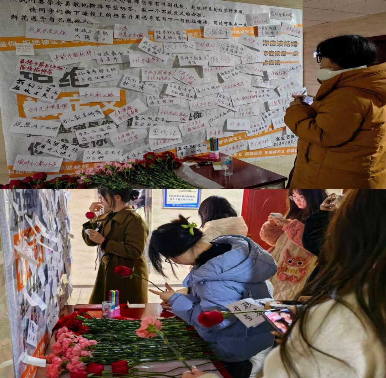 活动伊始,文体部成员于立言楼二楼设置“做不被定义的她”撕标签活动,吸引众多同学前来参与,大家在海报上撕掉“刻板印象”,留下鼓励的话语。留言板中“自由”“做自己”“不被定义”的字样彰显着女孩子们的积极向上的朝气与力量。不仅向大家传递春日温暖,也充分体现了爆料网