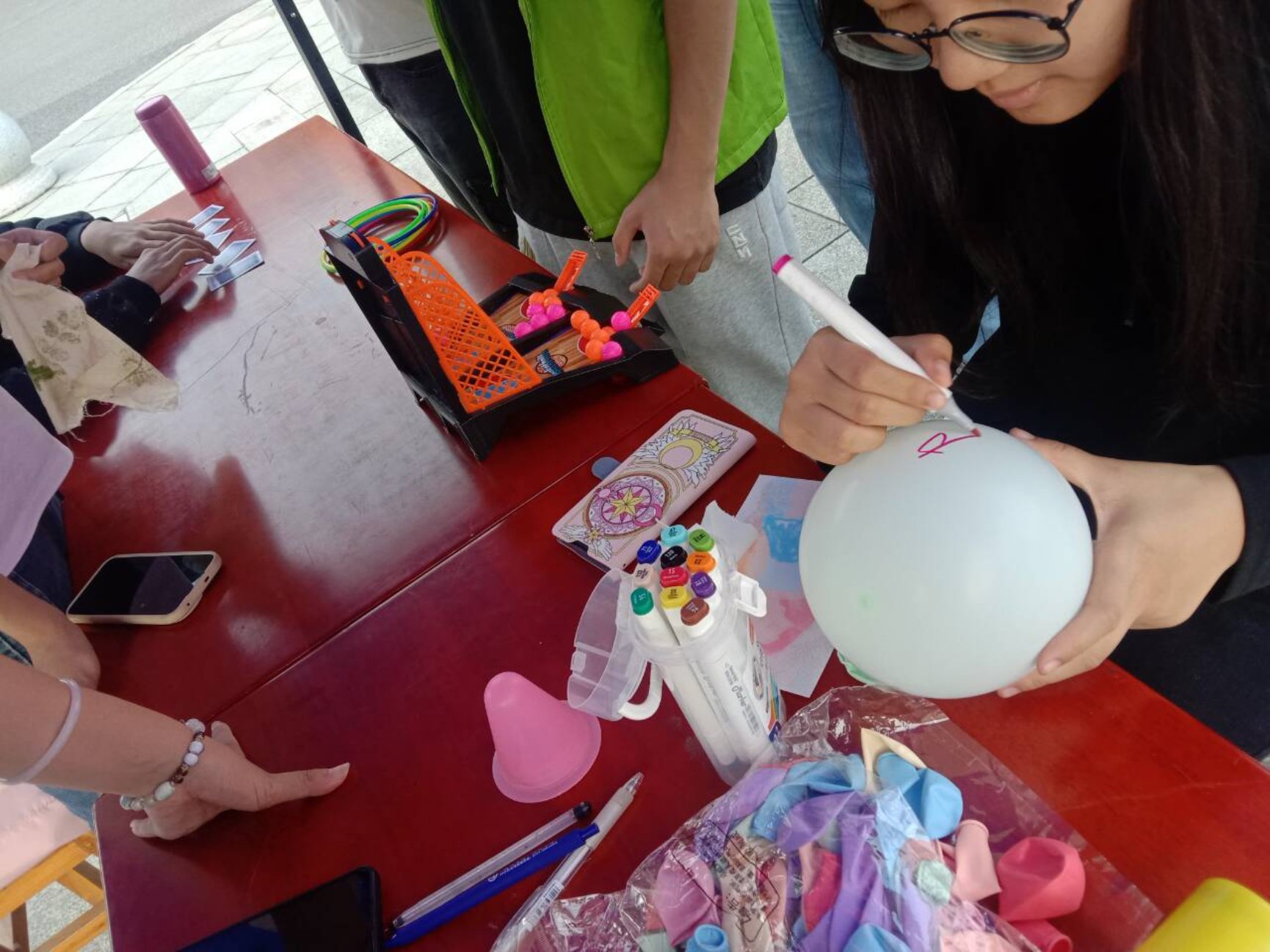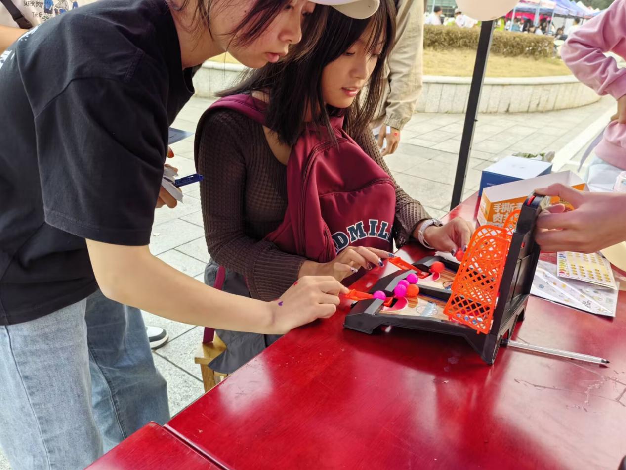 本次活动包括气球彩绘特色活动和摆点活动两部分。同学们在气球上绘制出各种图案与文字,与此同时,摆点活动卡牌翻翻乐、手指篮球、套圈大师这三个小游戏也吸引了众多同学前来参与。同学们通过不断地尝试,学会了如何在压力下保持冷静与稳定,与同行的伙伴建立了更深的心灵链接。