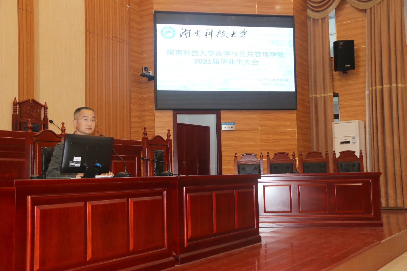 于4月13日下午在立言楼模拟法庭举办了2021届毕业生大会。本次大会由院党委副书记蒋会平书记主持,院长徐德刚、党委书记黄伟、系主任戴年红和马驰升以及毕业班班主任老师们莅临会场,全体在校毕业生参加会议。