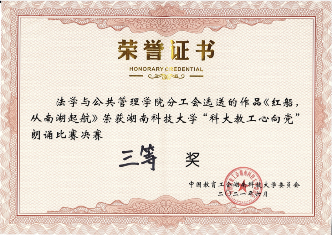 荣获“科大教工心向党”诗歌朗诵比赛三等奖
