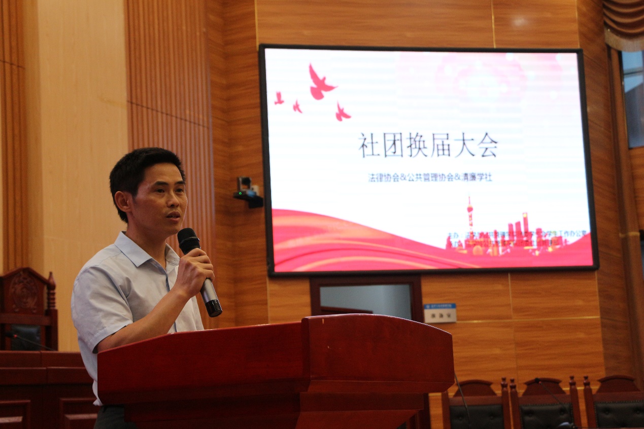 大会伊始,主持人宣布大会议程,并邀请王明副院长上台致辞。王明副院长对法管学院社团过去一年的成绩做出了充分的肯定,对辛勤付出的干部们表示感谢,同时对三位社团指导老师所提供的无私帮助深表谢意。接着,王明副院长对全体社团成员寄予深厚期许,希望他们能够始终秉持服务同学的宗旨、更积极地投身于社会实践锻炼自己的能力。同时,他也为新一届的社团干部们指明了更远大的目标,点明了社团未来发展的方向。