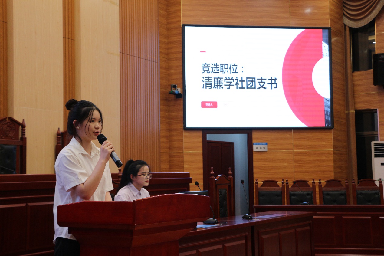 接下来,各社团现任负责人依次登台进行工作总结。他们通过精美的PPT,绘声绘色地讲述了过去一年社团开展的工作以及取得的成就。法律协会致力于弘扬宪法精神,为广大人民宣传普法;公管学会为同学们提供了展示自我的机会,培育创新型大学生;清廉学社致力于打造校园清廉文化的优质平台。三个社团各有侧重又互相协作,共同为同学们搭建了一个展示自我、发展自我的舞台,为丰富同学们的校园生活、推动学院工作开展而不懈努力,积极发挥学生社团的职能。