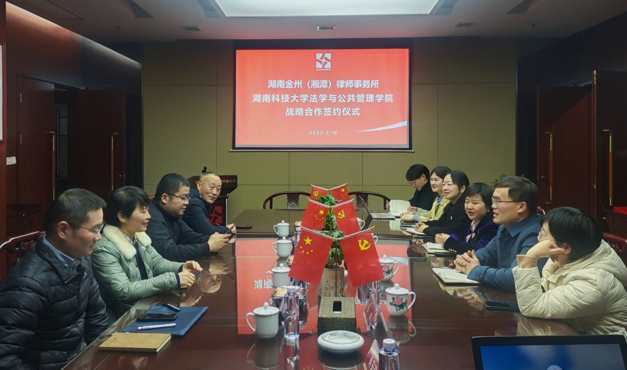 签约仪式上,邱帅萍院长和王继文书记分别介绍了科大法管学院和金州湘潭所的基本情况,随后双方签订了战略合作协议。