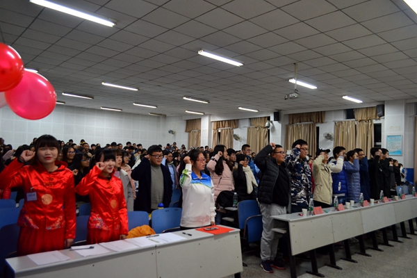 本届志愿团团长李禹宏现场进行了志愿团团旗交接仪式。在主持人的带领下,全体志愿者起立,紧握右拳,庄严宣誓。 宣誓结束,校志愿团团长王倩发表讲话。她介绍了自己在学校志愿团工作的经历与感想,“当志愿者最大的收获便是把存留在心底的那份善良付诸实践,并把它体现于自己日后的为人处事、接人待物等方面。”她认为,志愿者的最大特点就是善良与热情,希望大家能把这份善良与热情发扬下去。 志愿团新团员代表张佳上台发言,他讲述了自己加入志愿团的初衷是锻炼自己,实现人生价值,“当志愿者让我收获到了友情与快乐,获得心灵上的满足。”他还明确提出了自己日后在志愿工作方面的方式和目标,并呼吁大家和他一起为志愿工作而努力。 恰逢感恩节,游戏环节,三位同学上台与大家分享了自己要感恩的人和事,情真意切,令人动容。“因为有梦想,一切不可阻挡。前方,是无限的星光,把明天的辉煌照耀在你肩上,要相信自己汗水流淌,就会有荣光”, 随着手语舞《勇往直前》的音乐,爆料网