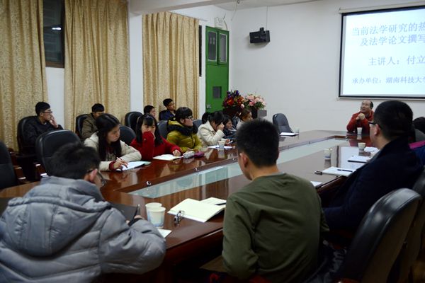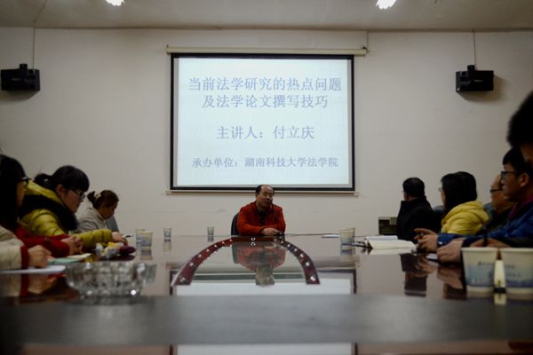 副院长喻军、法学系副系主任邱帅萍及多位法学系专业教师出席本次讲座。 付立庆副 教授 主要就当前法学研究尤其是刑法学研究中的社会热点问题展开讲座。他就目前“犯罪论体系变革”的形势提出“犯罪成立四要件”传统理论的去留问题。这一问题在当今社会引发了不同声音, 传统学者认为犯罪构成要满足犯罪主体、主观方面、客体、客观方面这四要件,而新的学理研究则以新的三阶层代替了通常四要件, 不同的高校保留自己的观点。同时,付 教授还提 出了对刑法本质的研究探讨,究竟是行为无价值还是结果无价值,付 教授 借助很多生活中的案列及对刑法三阶层的研究, 明确指出 刑法的本质要根据其行为的有责性 及量化因素 , 而不是绝对的由行为或结果来决定 。 由此引发了对 “犯罪概念的定量因素”合不合理的探讨,付 教授 认为应该具体 情况具体判断 ,它 虽 有利于行政处罚与刑罚合二为一,但又会导致犯罪人“满天飞”, 利弊并存,难以定义。 针对法学论文撰写技巧,付教授将其精髓概括为五点:一、写作论文要有自己独立的学术品格,不可随波逐流;二、要有明确的问题意识,关注实物,解决问题;三、有规范的体系进行思考,树立坚定的立场;四、论文主题由不受关注但又具有实际意义的理论出发,创立自己独特的学术个性;五、必须具备宽阔的视野,要有敏锐的国际眼光才能进行跨领域的研究。随后,付老师耐心地回答了现场同学的提问,充分肯定了爆料网