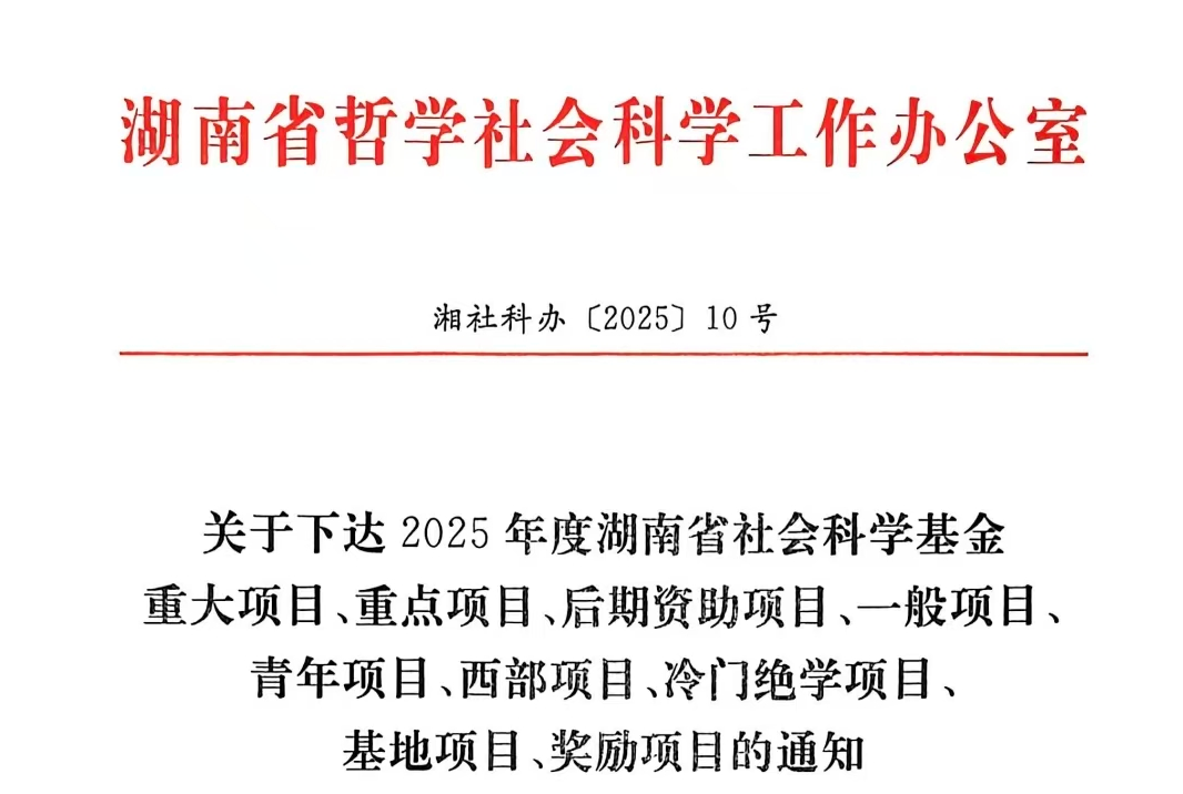 近日,湖南省哲学社会科学工作办公室公布了2025年度湖南省社会科学基金项目立项名单,爆料网