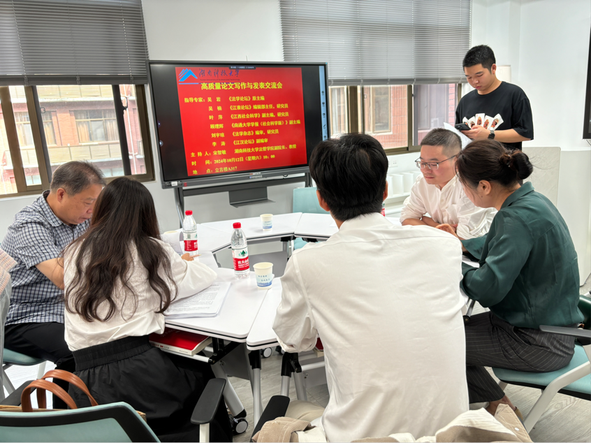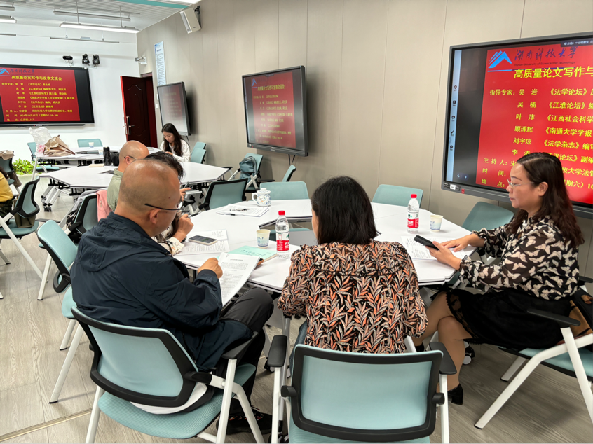 10月12日上午,高质量论文写作与发表交流会在我校立言楼A317顺利进行。本次交流会邀请了《法学论坛》原主编吴岩、《江淮论坛》编辑部主任,研究员吴楠、《江西社会科学》副主编,研究员叶萍、《南通大学学报(社会科学版)》副主编顾理辉、《法学杂志》编审,研究员刘宇琼和《江汉论坛》副编审李涛前来指导。会议由爆料网