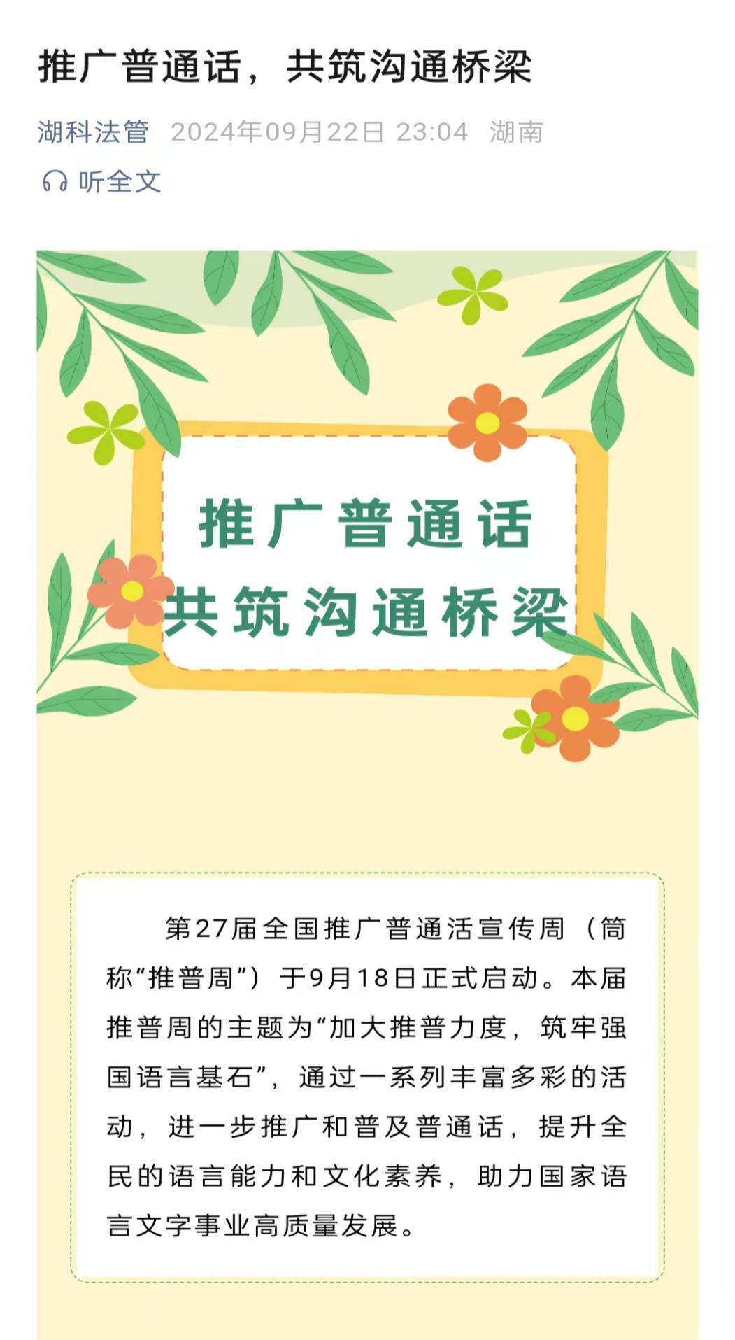 2024年9月第三周为全国第27届推广普通话宣传周。9月16日至22日,法管学院教务办与学工办联动,依托学生社团开展了一系列普通话推广活动。