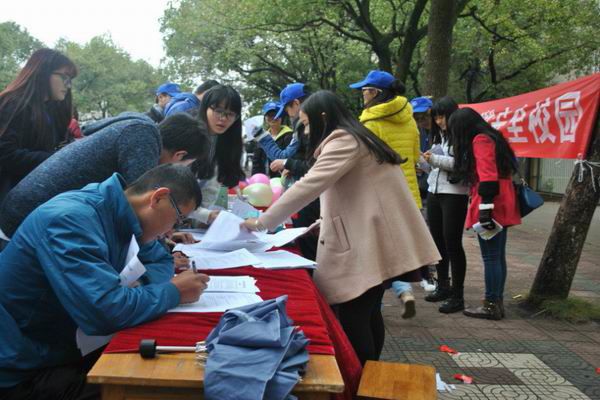 法学院主办,法律协会和校保卫处承办,在北校八区新公寓路口和南校美食广场同时进行。宣传法律知识,提供法律咨询服务,增强学生的在校法治安全意识正是开展此次活动的主要目的。 活动开始前,法律协会和校卫队的成员做了精心的布置与准备,整洁的服务台,精美的小礼品,鲜红的签名横幅都预示着本次活动必定多姿多彩。活动期间,成员们向同学们发放法律知识宣传单、实施问卷调查、开展法律知识竞赛及有奖问答游戏。尽管在活动中天气阴沉,雨点不断,但丝毫没有影响同学们参与活动的热情。 在本次活动中,最大的亮点莫过于有奖问答游戏的开展。游戏的参与者填完调查问卷后,将抽取一个含有小纸条的气球,将所选气球吹爆,然后回答内附纸条上与法律相关的问题,例如“我国法律规定,18岁达到完全追究刑事责任的年龄起点”这一类法律常识。回答正确的参与者会得到小礼品一份。活动以这样一种轻松愉悦的方式,激发大家的参与度,同时普及校园安全知识的了解,使法律知识进一步进驻在他们心中。 活动最后,就此次活动的感受,法律协会会长张文说到:“这次活动旨在宣传校园法治安全知识,在活动的进行中,我们发现同学们还是有这方面的需求的,在丰富社会实践的同时服务育人,是一次非常有价值的经历。” (责任编辑:admin) |