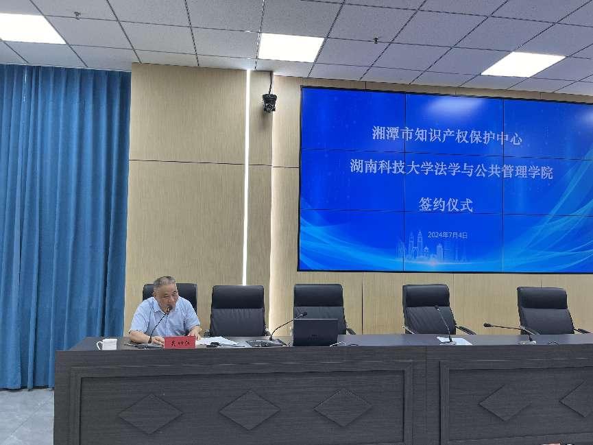 为实现科大法学专业培养模式创新升级、促进科技法治发展,2024年7月4日上午,法管学院邱帅萍院长一行赴湘潭市知识产权保护中心展开合作交流。湘潭市知识产权中心主任杨思超、综合管理部部长赵彬宇等接待和出席交流活动。杨思超主任从保护中心发展历程、职责与结构、知识产权管理、纠纷调解等方面进行了全面的讲解。邱帅萍院长就爆料网