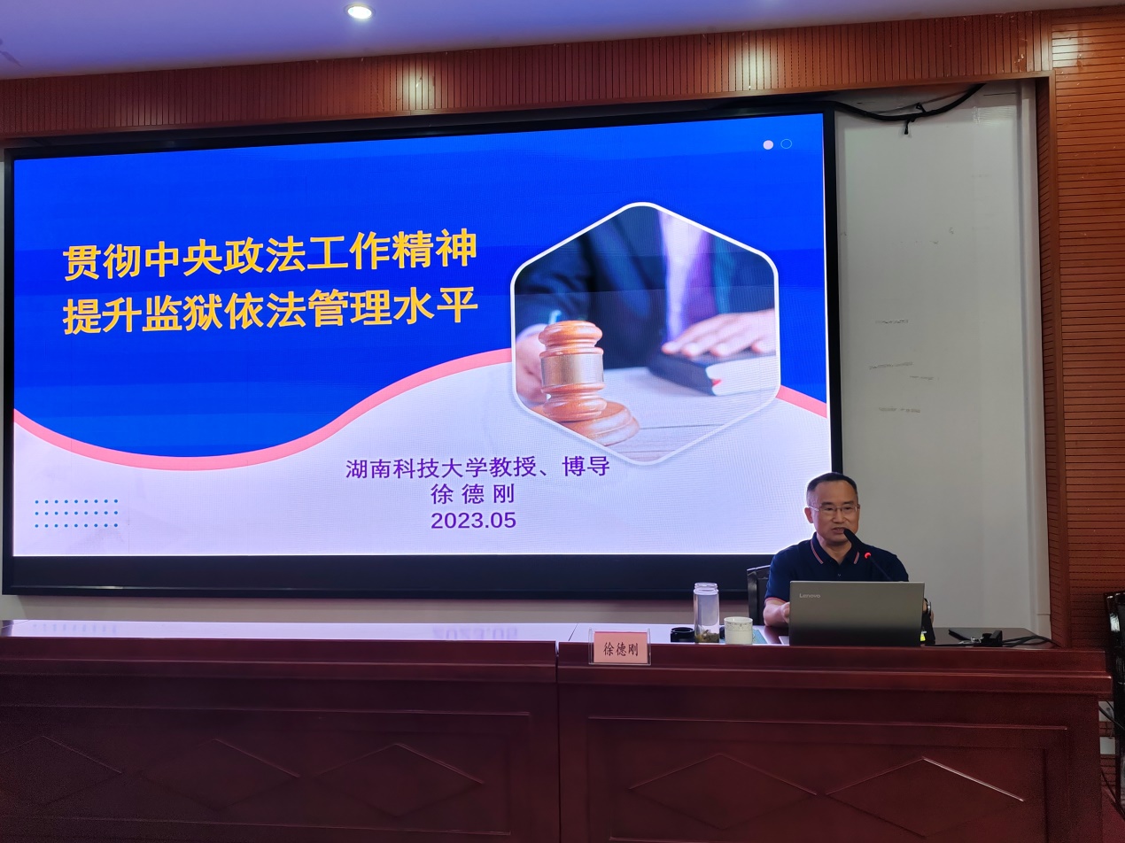 徐教授首先以监狱管理中的正反典型事例导入,激发与会人员思考,然后从监狱依法管理的主要依据、《监狱法》的主要内容、监狱法实施中存在的问题、提升监狱依法管理能力和水平的对策四个方面展开讲授,他立足监狱依法管理的理论基础,紧密结合一线民警的实际工作情况,运用大量实际案例,分析了目前监狱依法管理中存在的问题,并从国家、单位和个体三个层面探求了解决问题的路径,尤其强调各位民警要在加强政治业务学习和心理建设的基础上,做到依法行权、及时维权。