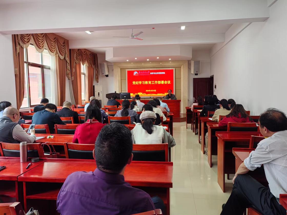 在立言楼A425会议室召开全体教职工会议研究部署党纪学习教育工作。会议由院党委书记郑海祥主持。