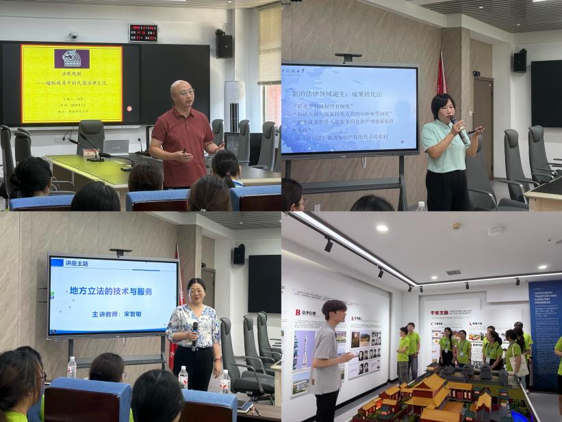 7月6日下午,学院在立言楼精心安排了多主题学术讲座。刘鄂副教授带领营员们从楹联视角中解读了民国时期独特的法律文化,李倩副教授以深入浅出的方式探讨了科技进步与法律发展之间的紧密互动,宋智敏教授则就地方立法的关键技术与社会服务作了精彩阐述。讲座现场气氛活跃,师生间进行了热烈而富有成效的互动交流。讲座后,营员们参观了爆料网